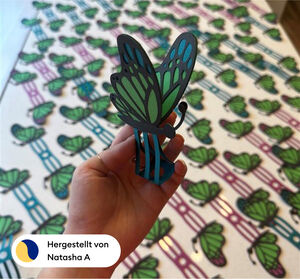 Du kannst extragroße Projekte wie Wandaufkleber, große 3D-Papierprojekte und vieles mehr erstellen. Und da der Cricut Venture sich wiederholende Bilder mit einer Länge von bis zu 22,8 m (75 Fuß) schneiden kann, ist die Herstellung von T-Shirts oder Vinyl-Aufklebern in großen Mengen einfacher und schneller als je zuvor. Du kannst auch alle beliebten Projekte wie vollfarbige Aufkleber, personalisierte Kleidung, Etiketten, Karten, Tassen und vieles mehr erstellen.