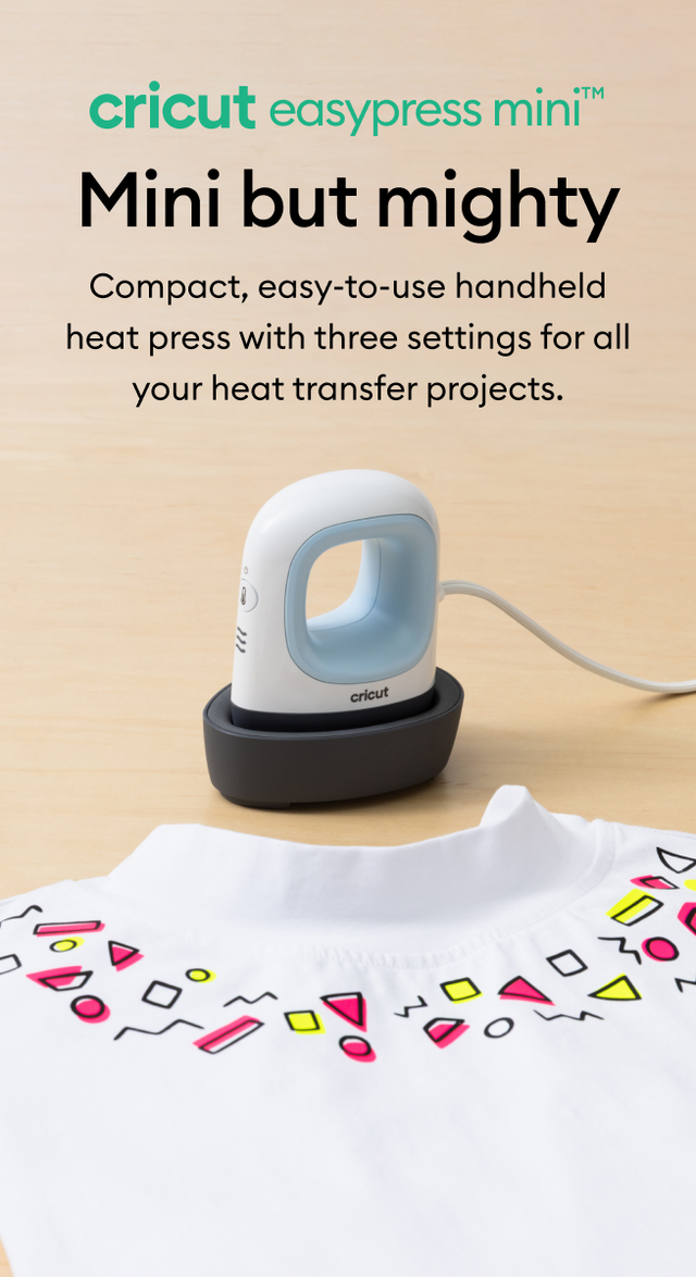 Mini but mighty! Get high-impact heat transfer results with Cricut EasyPress Mini™ — a compact heat press for small or uniquely-shaped projects with hard-to-reach spaces. Whether you’re pressing small designs onto T-shirts or working around buttons & seams, you’ll have what it takes to make a successful transfer.