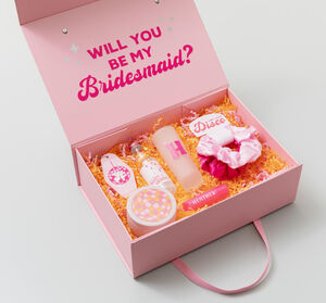 Ask them to walk you down the aisle in style with custom bridesmaid and groomsmen gift boxes.