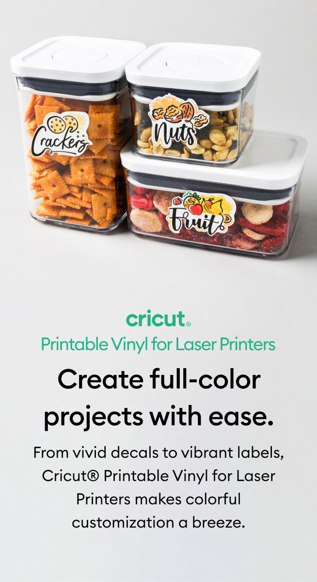 Make custom full-color projects that wow! Cricut® Printable Vinyl for Laser Printers works with your home laser printer to print, then cut full-color designs. Just create your design and print it, then your Cricut® cutting machine automatically recognizes & precision-cuts the design for amazing custom laptop stickers, decor, labels, and so much more. For best results, remove printer paper from printer tray, then load and print only one sheet of printable vinyl at a time. All Cricut materials are optimized for Cricut cutting machines with automatic cut settings in Design Space® to ensure you have the best cutting experience.
