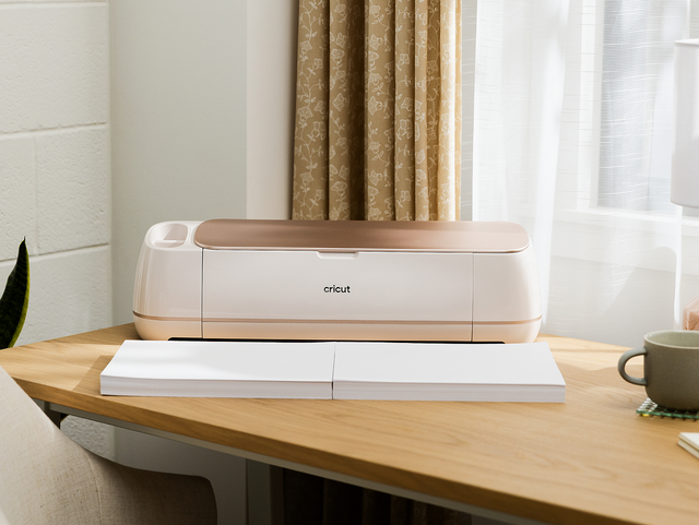 About the size of two reams of paper, Cricut Maker™ 4 fits perfectly on your desk, kitchen counter or wherever you craft, and helps you create projects up to 11.7 in (29.7 cm) wide by 12 ft (3.66 m) long.²