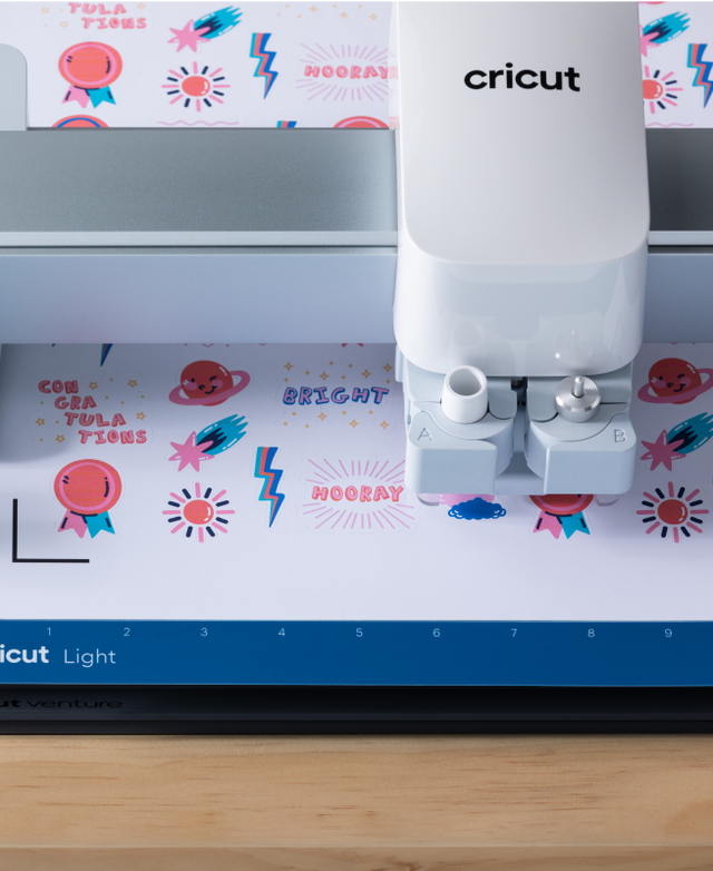 You can make extra-large projects like wall decals, big 3D paper projects, and so much more. Plus, since Cricut Venture can cut repeated images up to 22.8 m (75 ft), making batches of T-shirts or vinyl decals is easier and faster than ever before. You can also make all the popular projects like full-color stickers, personalized apparel, labels, cards, mugs & more.