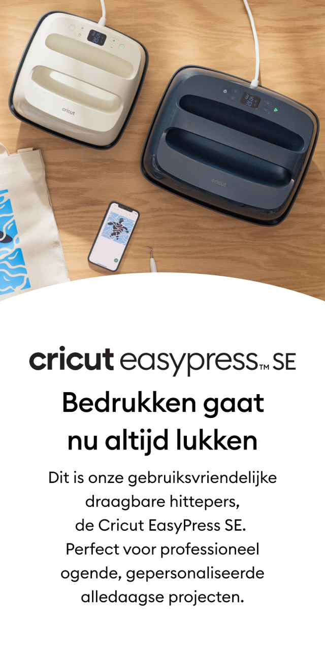 De Cricut EasyPress SE is geschikt voor allerlei materialen, waaronder stoffen, katoen, polyester, polykatoenmixen, hout en canvas. De Cricut EasyPress SE werkt ook erg goed met Iron-On (HTV), Infusible Ink™, DTF (Direct-to-Film) en sublimatieproducten. Voor een volledige lijst met geschikte materialen en aanbevolen instellingen ga je naar onze Cricut Heat Guide.