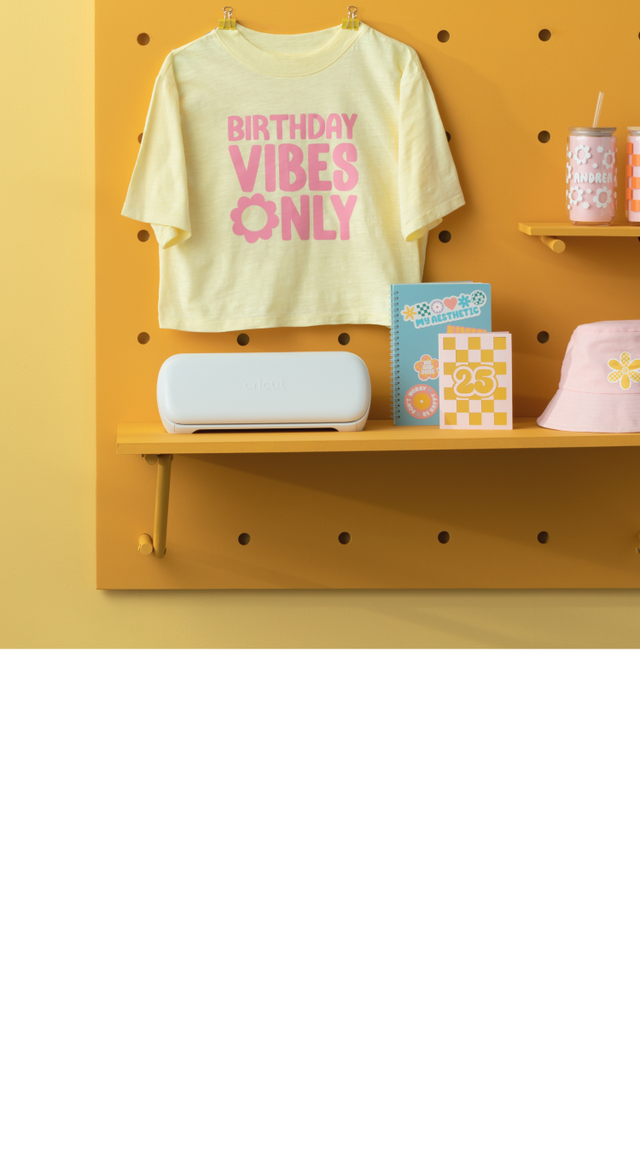 A máquina de corte Cricut Joy Xtra é perfeita para aqueles que procuram criar os nossos tipos mais populares de projetos, como autocolantes a cores, t-shirts, decalques, etiquetas para escrita, cartões, canecas e até chapéus!